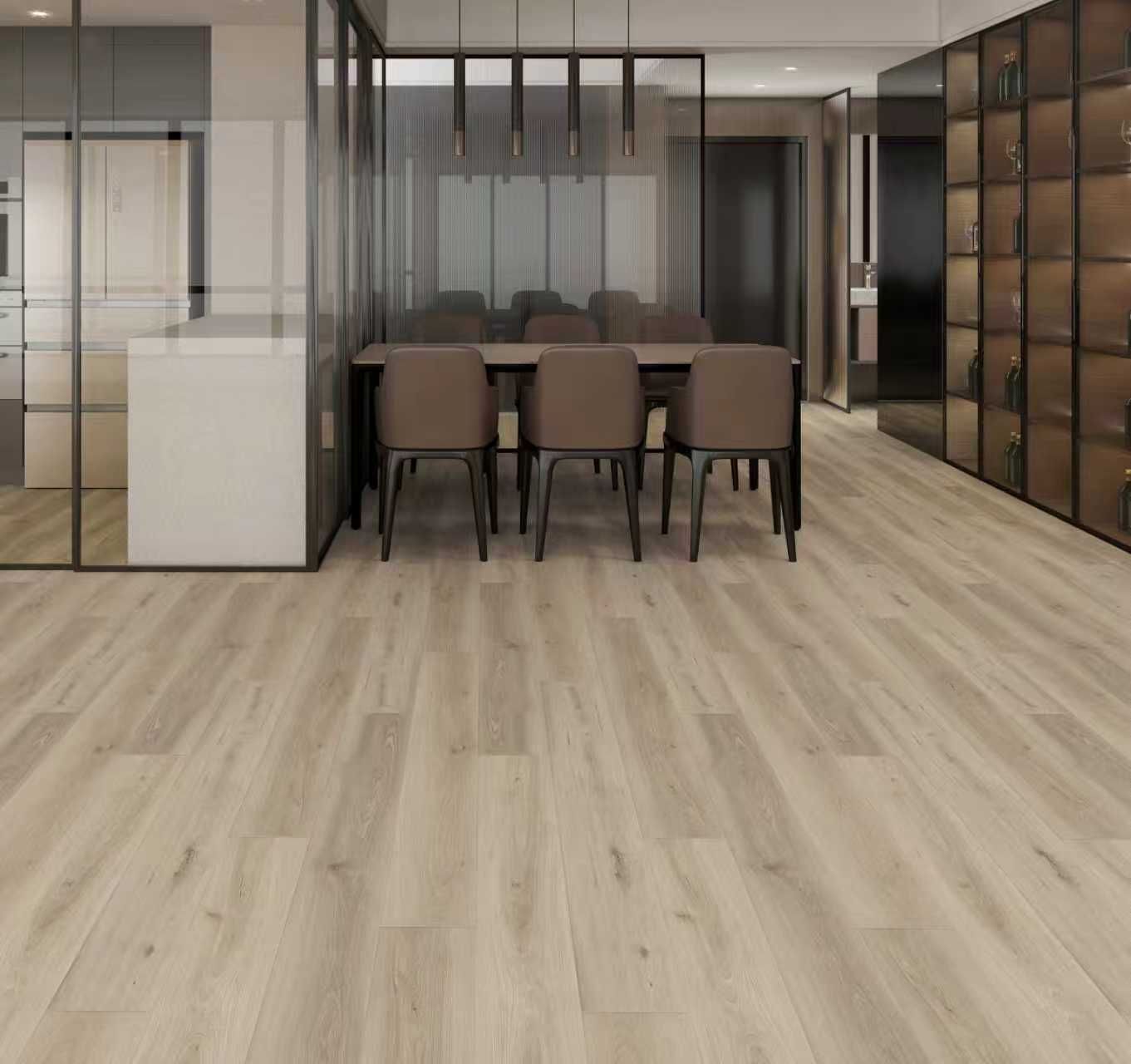 | Description | Hybrid SPC flooring, 0.55mm wear layer, with attached 1.5mm acoustic sound pad。 |