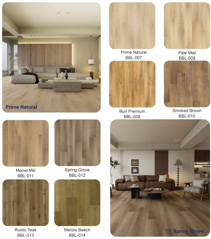 The 6.5mm plank includes 12 most popular realistic timber textures in Australia